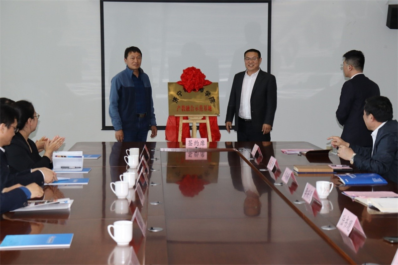 雙方代表共同為“濟寧技師學院產(chǎn)教融合示范基地”揭牌