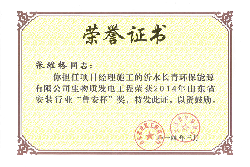 Certificate of honor